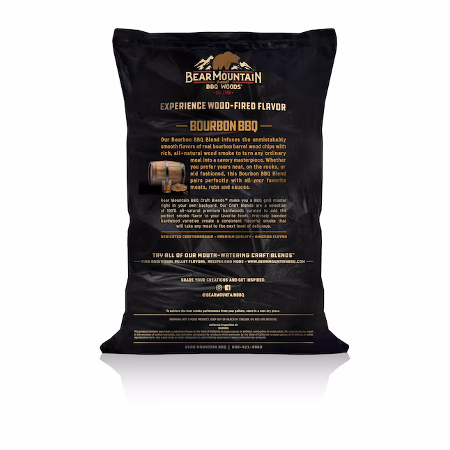 • Infuse your grilled meats and veggies with the bold, rich flavor of Bear Mountain Bourbon BBQ Pellets. Made from a blend of premium hardwoods, these pellets deliver a smooth smokiness with a hint of bourbon sweetness, perfect for enhancing the taste of beef, pork, poultry, and even seafood. The robust flavor profile of bourbon pairs excellently with any BBQ dish, giving it a unique, mouth-watering twist. Whether you’re smoking low and slow or grilling hot and fast, this 20lb bag of pellets provides consistent heat and clean-burning performance. Available in 20 lb bags.