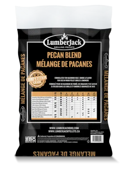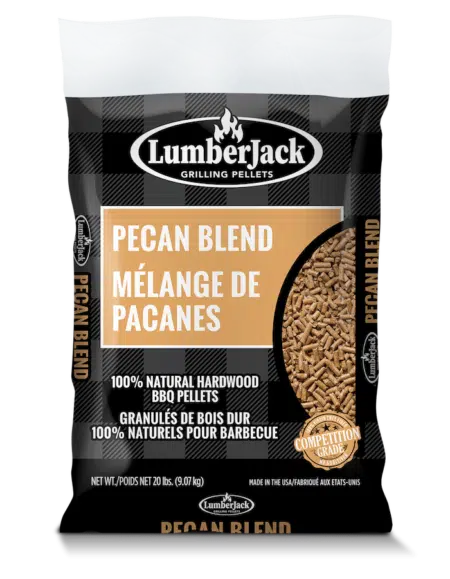 Pecan wood provides a strong, smooth smoke with the sweet nutty flavor of pecans and gives food a real Southern BBQ flavor. With a mixture of 60% Oak and 40% Pecan, this blend offers a nice balance between heat and Pecan flavor. Lumber Jack Pecan Blend wood BBQ pellets are considered an all-food favorite but are particularly great with chicken and ribs.