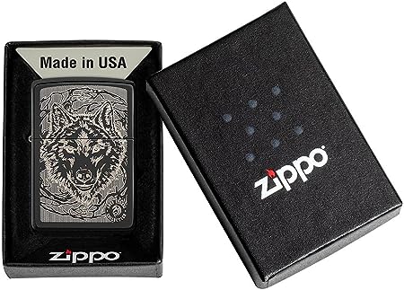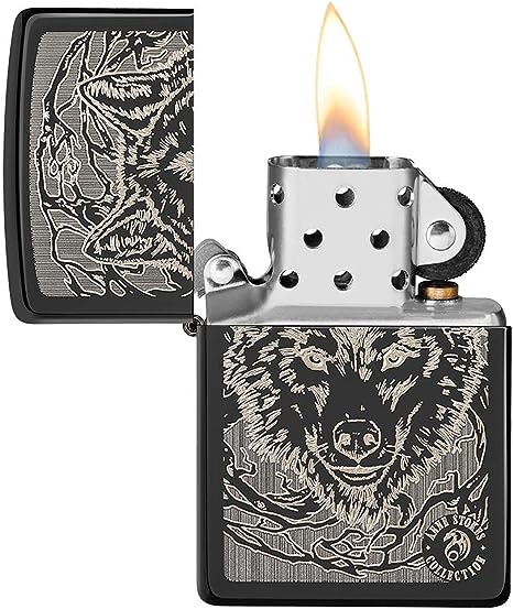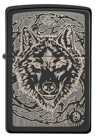 Zippo and Anne Stoke have collaborated for many years to create incredible works of fantasy art on Zippo windproof lighters. This design uses a laser coloring process to engrave a wolf face onto the High Polish Black lighter. Gift box. For optimal performance, use Zippo lighter fuel.